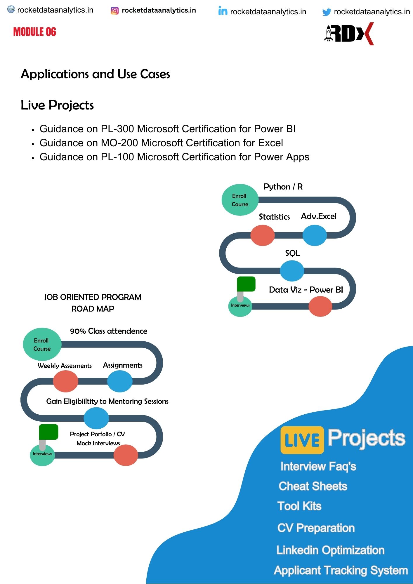 Your quest for a non-code coding career comes to an end here. Rocket Data Analytics Data Analyst Course with Excel, Tableau, MySQL, Power BI & more relevant tools & skills is the right career choice. Lead your way with Road & Mind map’s, cheat sheets, and Chapt GPT usage to streamline your interview prep to land your dream job with over 100+ hiring partners.
