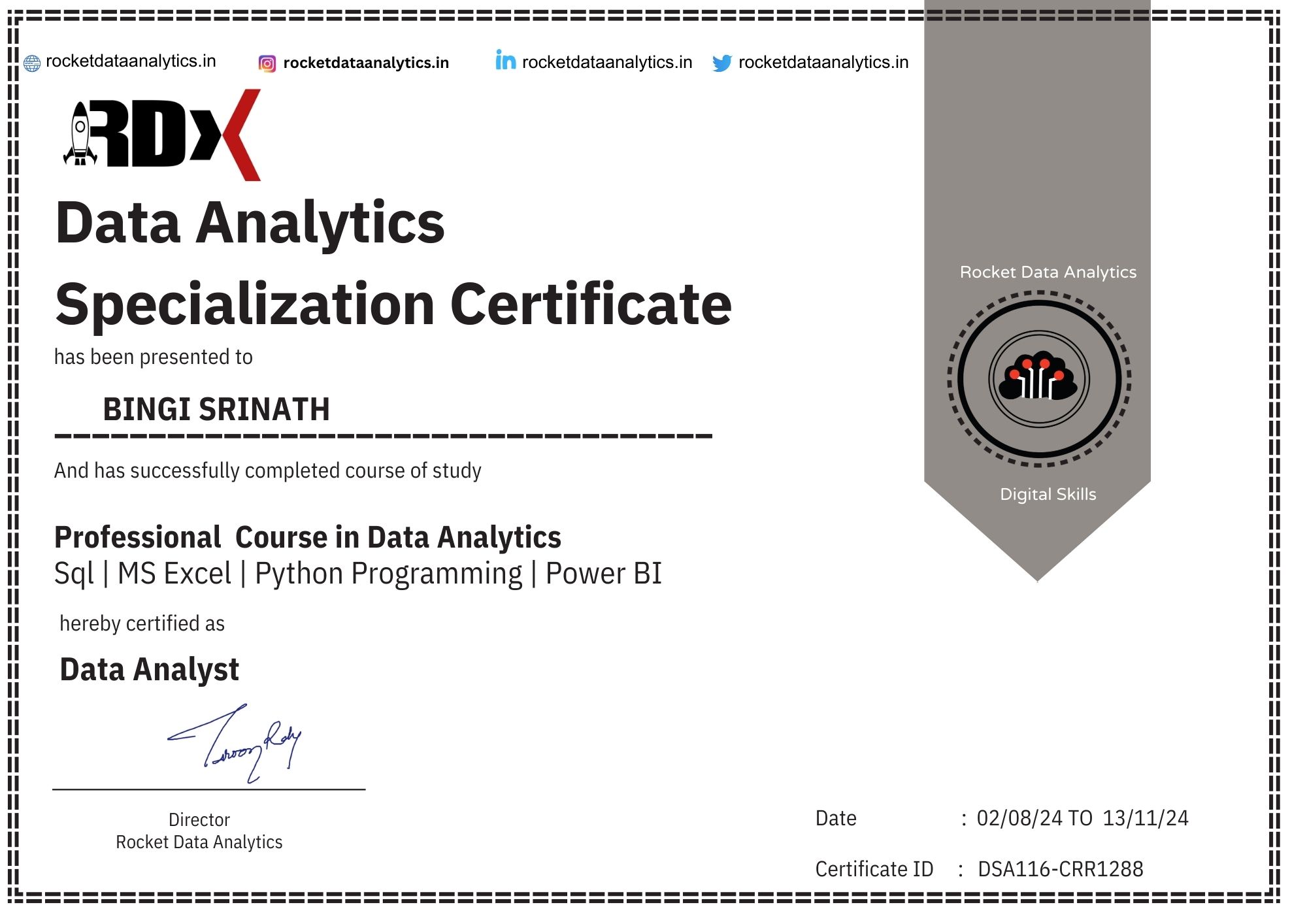Your quest for a non-code coding career comes to an end here. Rocket Data Analytics Data Analyst Course with Excel, Tableau, MySQL, Power BI & more relevant tools & skills is the right career choice. Lead your way with Road & Mind map’s, cheat sheets, and Chapt GPT usage to streamline your interview prep to land your dream job with over 100+ hiring partners.